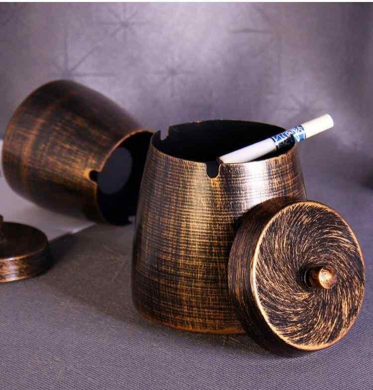 灰皿 車用 オフィス 卓上 家庭用 蓋つき 密閉 高級感 おしゃれ インスタ映え スタイリッシュ インテリア 装飾 金属製 アイアン ブロンズ アンティークゴールド アメリカン シンプル 上品 吸い殻入れ