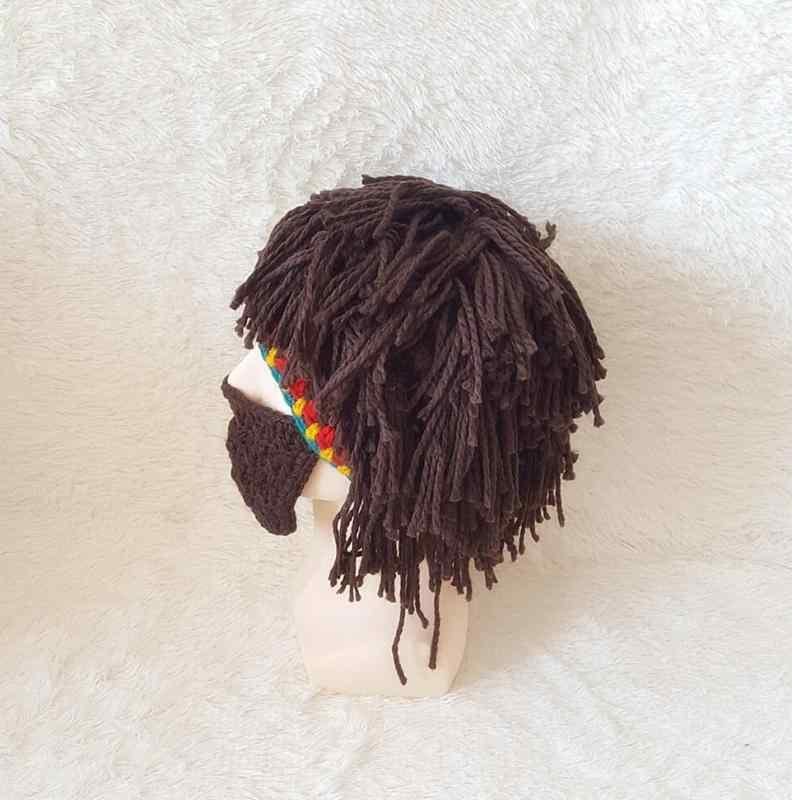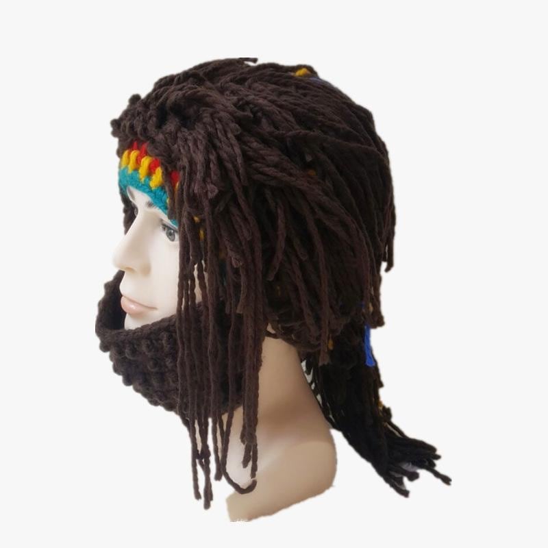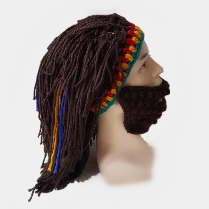 ニット帽 男女兼用 ウィッグ 付けひげ 一体型 変身 仮装 コスプレ ユニーク 個性的 レゲエ風 ラスタ 手編み ハンドメイド アクリル 毛糸 秋冬 防寒 保温 暖かい ストリート ヒップホップ パーティー イベント 首元カバー カラフル