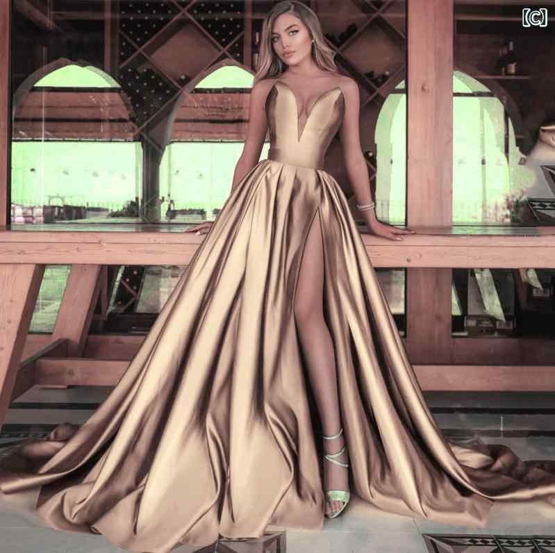 ・カテゴリ: ウェディングドレス ・対象: 大人 ・性別: 女性 ・主な素材: ポリエステル 約80%〜90% ・ネックライン: 深Vネック ・袖丈: ノースリーブ ・丈: ロング ・ウエスト: ミドル ・スカートシルエット: ショートトレーン ・特徴: ファスナー ・カラー展開: レッド, グリーン, ゴールド, 紺, ブルー ・サイズ展開: S, M, L, XL, XXL, XXXL