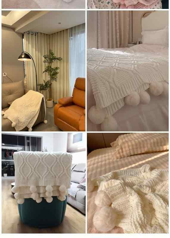 ブランケット シェニール ニット ポンポン マイクロファイバー 無地 ソファカバー マルチカバー 北欧風 インテリア 冷房対策 ひざ掛け オールシーズン