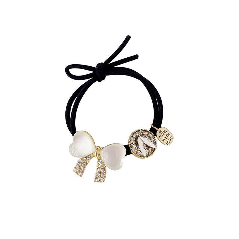 ヘアゴム レディース 韓国風 ファッション キャッツアイストーン リボン ラインストーン装飾 シンプル 上品 エレガント 高級感 髪飾り 高弾力 伸縮性 ポニーテール お団子 まとめ髪 デイリーユース オフィス カジュアル 大人可愛い 髪留め