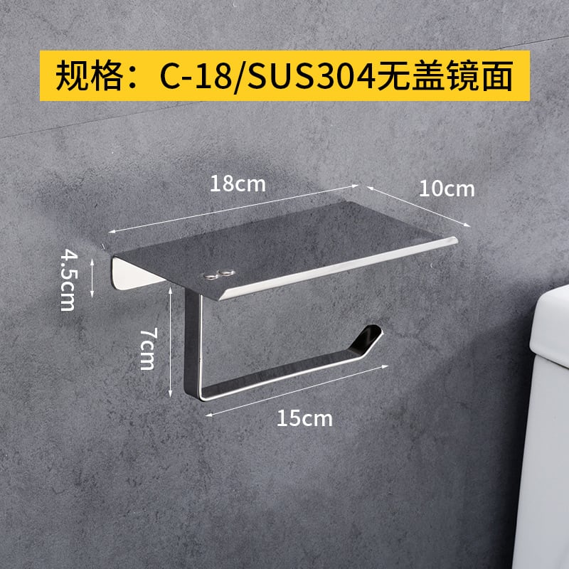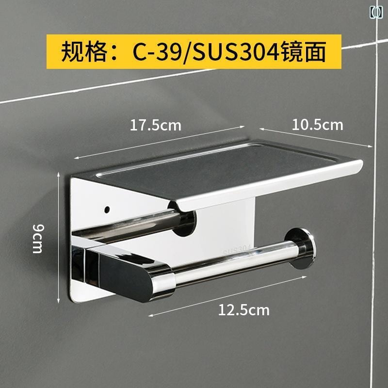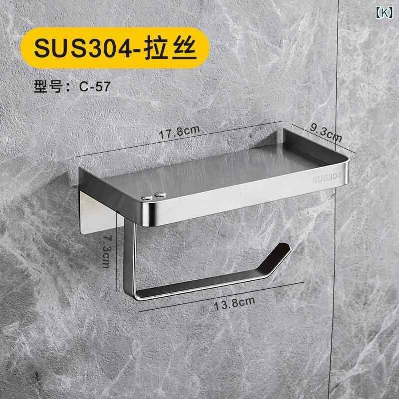トイレットペーパーホルダー スマホ置き 小物置き 304ステンレス製 バスルーム 洗面所 トイレ 家庭用 ホテル用 壁付け シンプル モダン スクエア型 鏡面仕上げ ブラック ヘアライン仕上げ