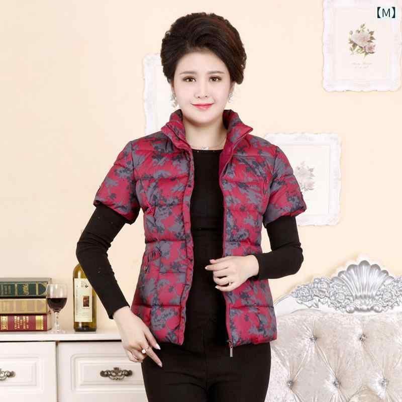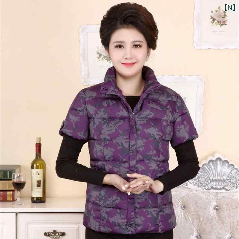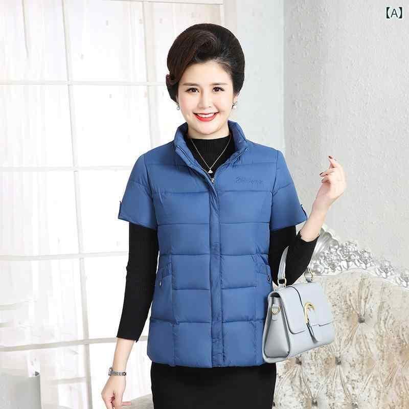 ベスト レディース ママ シニア 秋冬 中綿ベスト アウター ジレ チョッキ 羽織り ノースリーブ 普段使い ジップアップ 前開き ポリエステル素材 軽量 保温 防寒 無地 ショート丈