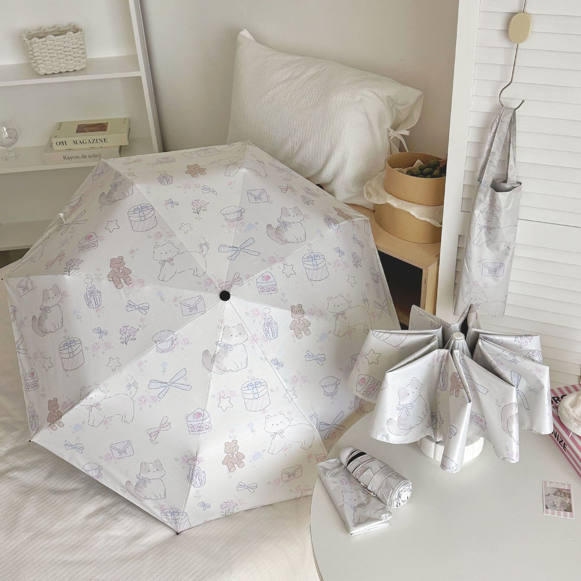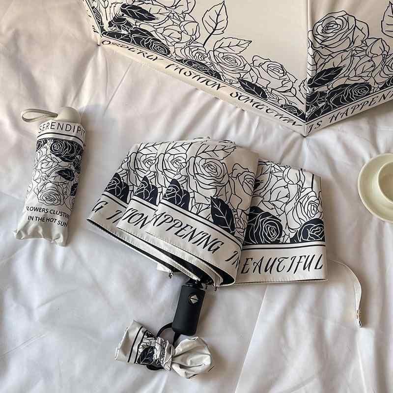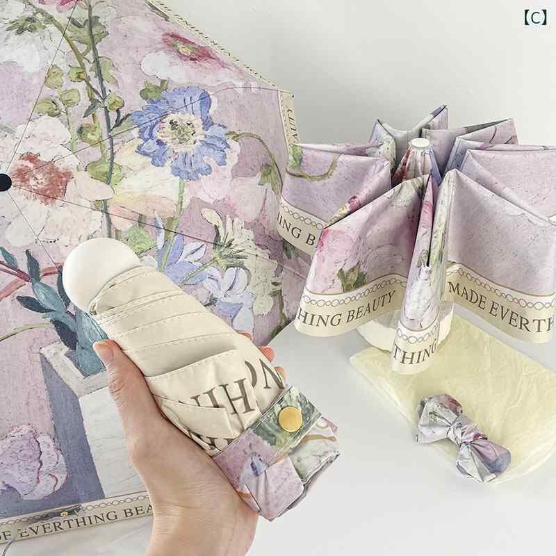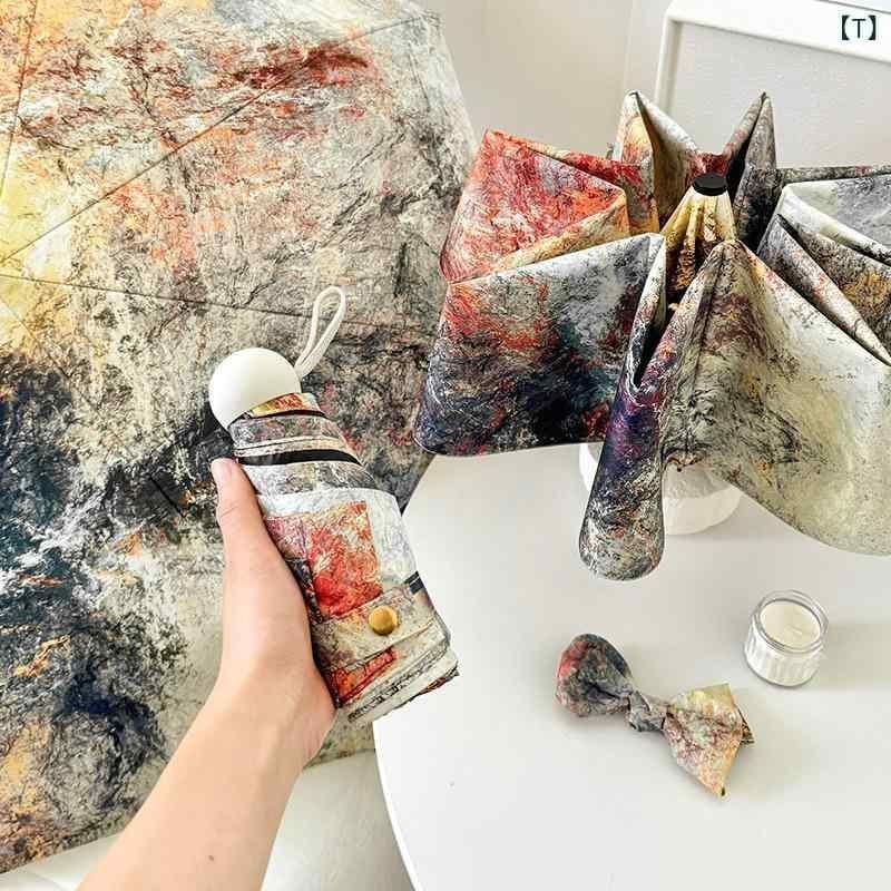 ・カテゴリ: 晴雨兼用傘 ・スタイル: クリエイティブ、トレンド ・タイプ: 三つ折り傘 ・形状: 標準傘 ・流行要素: デジタルプリント ・傘生地素材: ポンジー ・傘生地加工: 黒色コーティング ・傘生地密度: 210T ・親骨素材: ファイバー ・親骨本数: 8本 ・中棒素材: 鉄 ・持ち手素材: ゴム ・開閉方式: 自動開閉 ・収納方式: 自動収納 ・紫外線遮蔽率: UPF50+ ・重量: 約380g ・対象: 女性 ・柄展開: レインボー曲線、イバラの花、ピンクのバラ、野バラ、水墨煙雲、水墨清楓、小さな赤い花、黄色い花、グリーンローズ、グラデーションレッドタイダイ、サザンカ、物語の小さな黄色い花、レトロイングリッシュローズ、赤いバラ、黄緑の小花柄、水墨蝶、白い蝶、小さなピンクの花柄、黒い蝶、イチゴウサギ、灼熱の岩、鮮やかレイクグリーン、鮮やかインディゴ、レインボーシャドウ、レインボーライン、クジャク、大きな白いウサギ、紅粉佳人、アースタイダイ、ムクゲ、小さな紫の花、小さなヒナギク、グリーンアルファベット、黒いヒナギク、パンジー、墨絵の花、青い油絵の花、ゴッホ風猫柄、花と猫、夢幻猫柄、カートゥーンラグドール、花畑の猫、カラフルな蝶 ・サイズ展開: 5つ折り6本骨手動(小型)、3つ折り8本骨自動、3つ折り8本骨手動、5つ折り8本骨手動