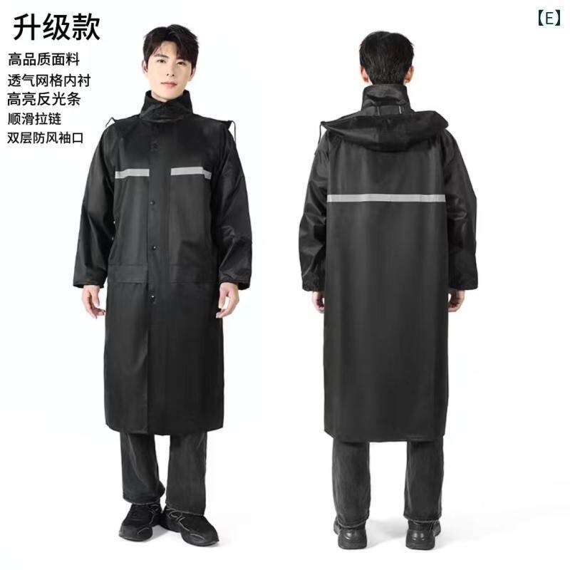 レインコート 男女兼用 ロング丈 オックスフォード生地 全身防水 豪雨対策 撥水 ポケット付き 二層構造 ワンピースタイプ アウトドア サイクリング 自転車 通勤 通学 清掃 業務 蛍光グリーン ブラック ネイビー