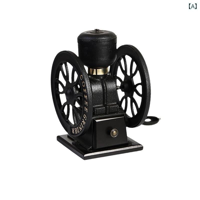 コーヒーミル 手動式 クラシック レトロ調 大型ホイール 鋳鉄製 アンティーク風 本格派 耐久性 安定感 インテリア ギフト コーヒー豆グラインダー