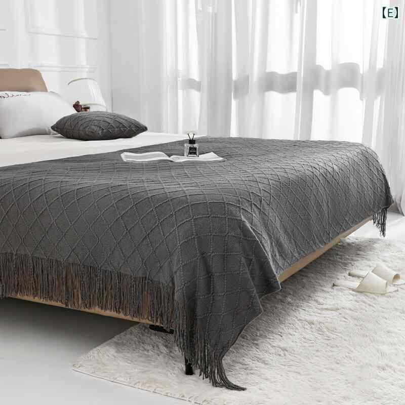 ブランケット 北欧 レトロ ひし形織り アクリルニット 無地 ベッドスロー ソファカバー マルチカバー おしゃれ かわいい インスタ風 ひざ掛け フットスロー