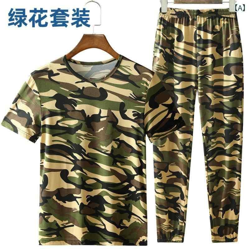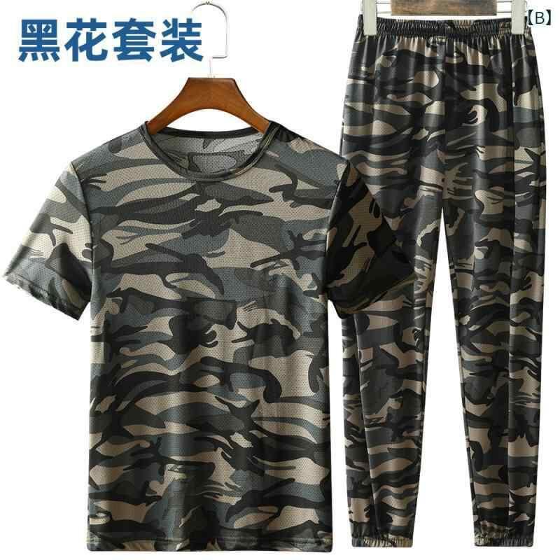 セットアップ メンズ 接触冷感 吸湿速乾 薄手 通気性 伸縮性 ゆったり 半袖Tシャツ ロングパンツ 迷彩柄 カジュアル 普段使い スポーツ 作業着 ポリエステル