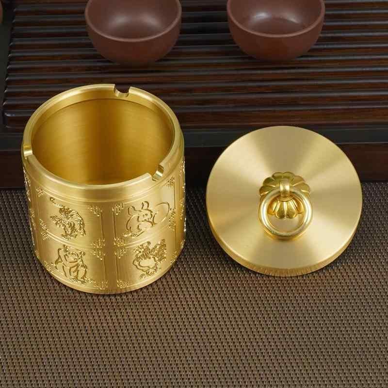 灰皿 真鍮製 蓋付き 卓上 車載 オフィス 家庭用 防臭 灰飛び散り防止 高級感 重厚感 おしゃれ インテリア 置物 レトロ アンティーク調 祥雲柄 福文字 十二支モチーフ 縁起物
