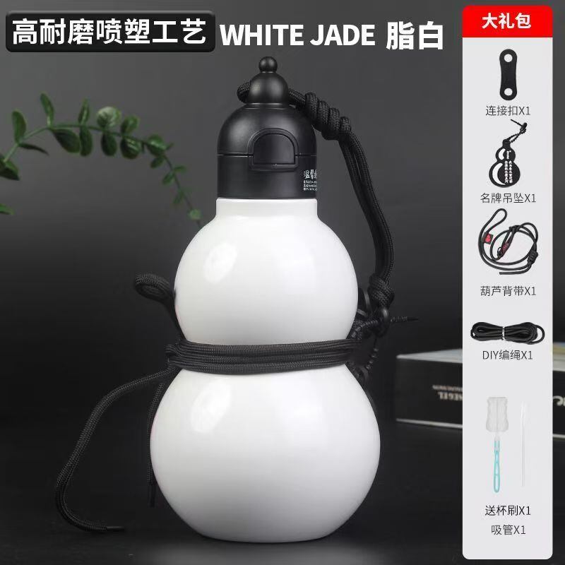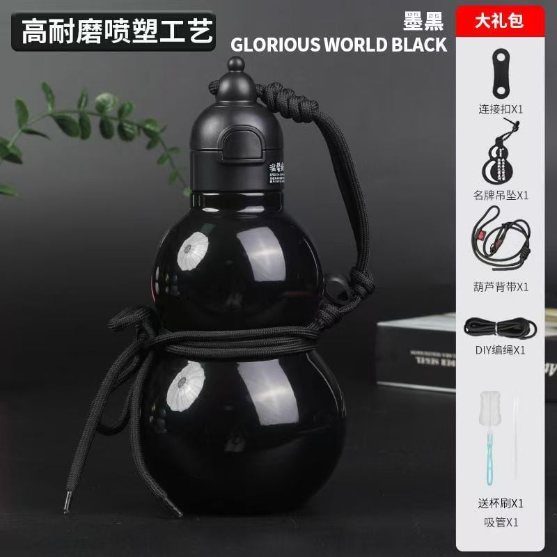 水筒 男女兼用 インフルエンサー 東洋風 ひょうたん型 ステンレス製 580ml 大容量 保温保冷ボトル ストロー付き アウトドア スポーツ 携帯用 真空断熱 ワンタッチ開閉 耐衝撃 黒 白 緑 赤 おしゃれ