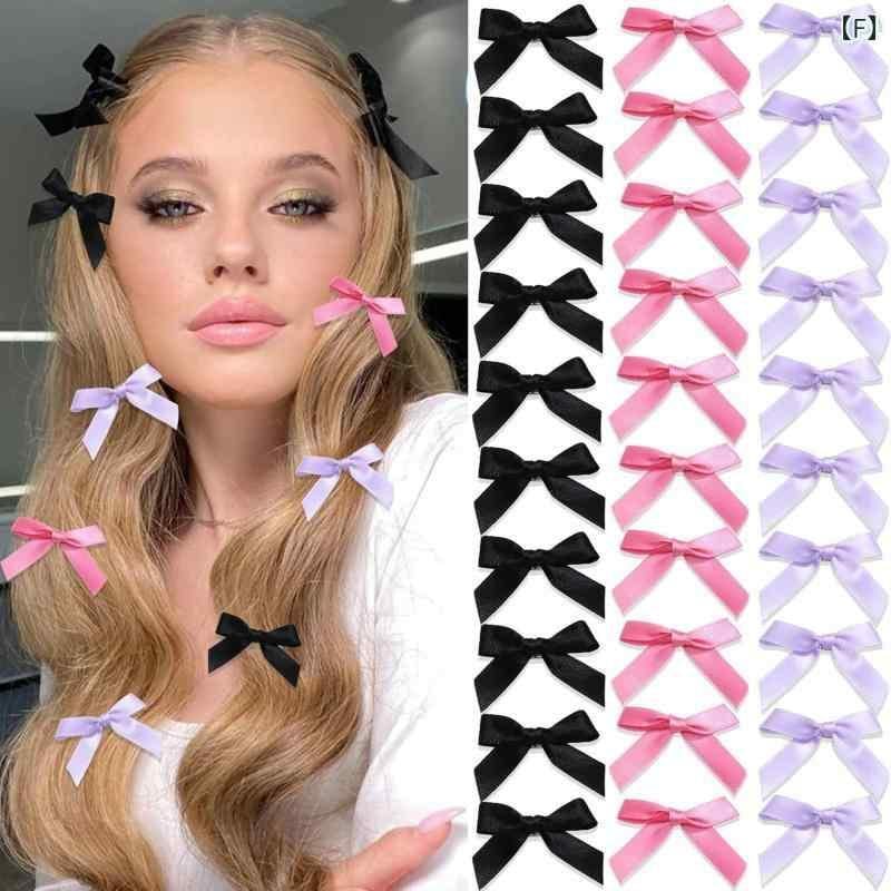 ヘアクリップ レディース 4cm 蝶々結び ミニ ダッカールクリップ バレエ風 リボン スイート かわいい フェミニン ヘアアクセサリー 髪飾り 布製 普段使い デイリーユース お出かけ ヘアアレンジ 多色展開