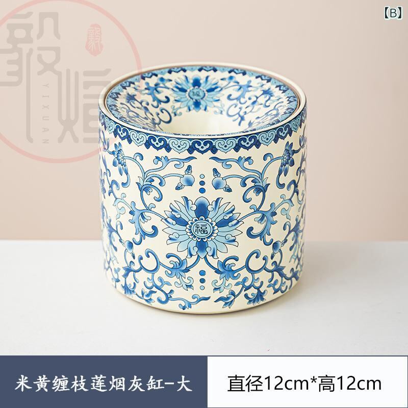 茶道具 蓋付き 灰皿 陶器 磁器 茶器 茶殻入れ 水盂 杯洗 家庭用 業務用 防塵 灰飛散防止 高級感 青花 汝窯 和風 多機能 レトロ調 ベージュ 蓮柄 花柄