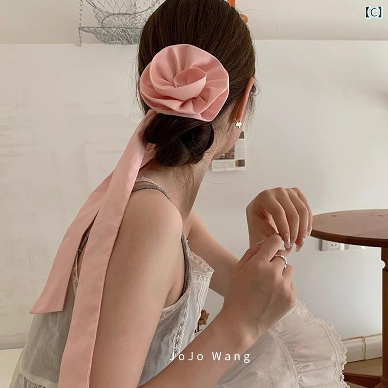 アクセサリー レディース ローズ フラワーモチーフ リボン チョーカー ネックレス ベルト ヘアバンド マルチウェイ 個性的 シルク調 韓国風 アイボリー ライトブルー ピンクベージュ
