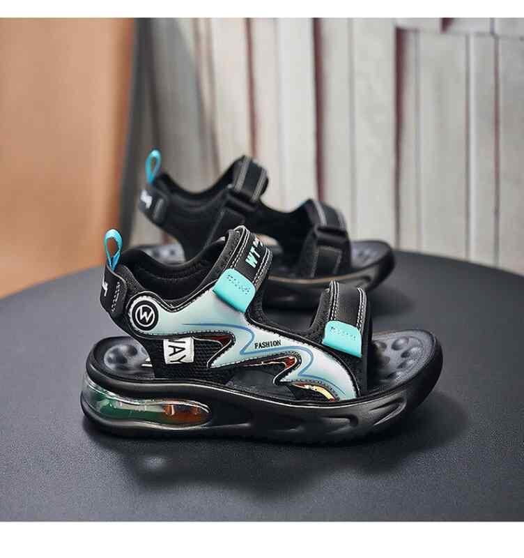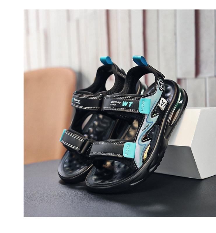 サンダル 男の子 キッズ ジュニア スポーツサンダル ビーチサンダル 滑り止め ソフトソール クッション性 軽量 面ファスナー 人工皮革 EVAソール 夏用 アウトドア レジャー ブルー グリーン