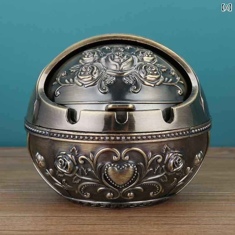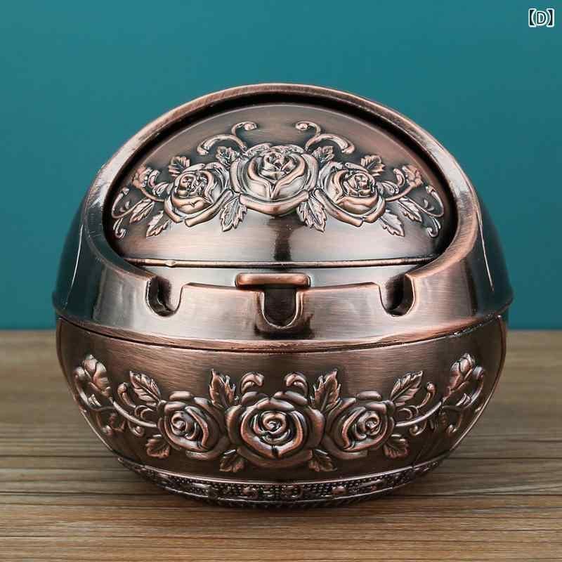 灰皿 欧式 アンティーク風 蓋付き 卓上 家庭用 リビング オフィス 飛散防止 ロシア風 亜鉛合金製 クリエイティブデザイン バラ柄 魚柄 エジプト ドバイ 小型 大型 青銅色 赤銅色