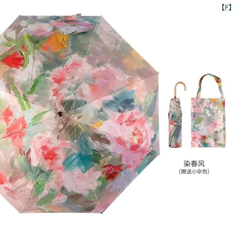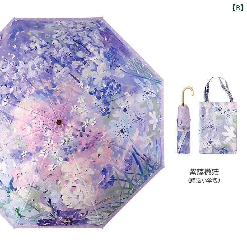 晴雨兼用傘 レディース 三つ折り 折りたたみ傘 日傘 UVカット 遮光 紫外線対策 花柄 油絵風 アートデザイン 軽量 コンパクト ポンジー生地 通勤 通学 旅行 お出かけ