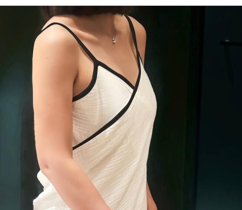バスローブ レディース 綿100% ガーゼ バックオープン キャミソール ワンピース お風呂上り ルームウェア 部屋着 吸水速乾 肌触り やわらか 快適 ブラック ホワイト バイカラー