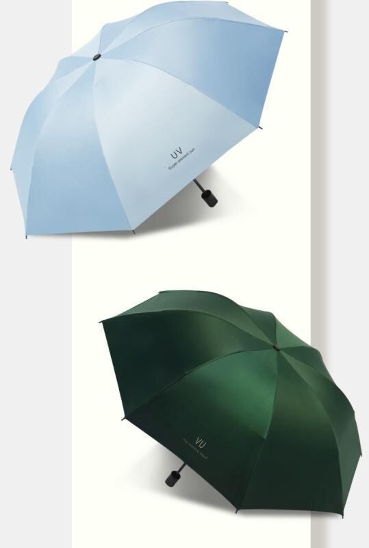 ・カテゴリ: 晴雨兼用傘 ・スタイル: 折りたたみ傘 ・傘生地素材: ポンジー ・傘生地加工: 黒膠コーティング ・傘生地密度: 170T ・傘骨素材: 鉄 ・中棒素材: 合金 ・傘柄素材: プラスチック ・傘骨数: 8本 ・開閉方式: 手動 ・対象: 成人 ・総重量: 約240g ・カラー展開: UVピンク、UVブラック、UVネイビー、UVライトブルー、UVダークグリーン、UVオフホワイト ・デザイン: クリエイティブ、トレンド ・用途: ビジネス、販促、記念品、個人用 ・UVカット率: UPF40以上