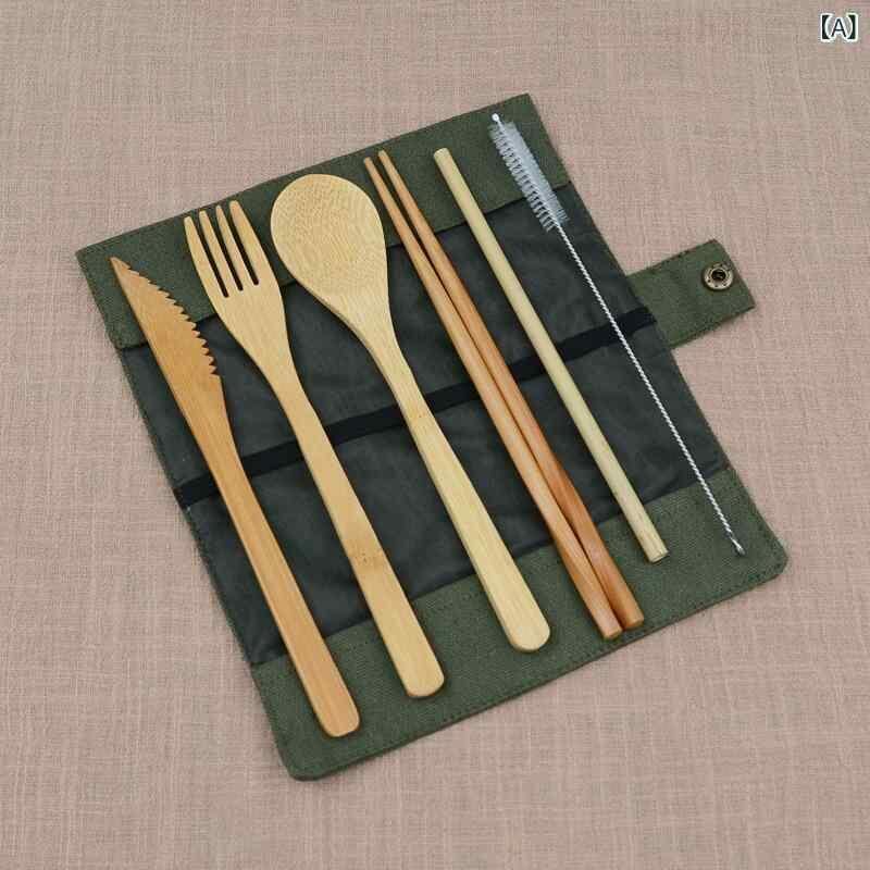 カトラリーセット アウトドア 旅行 キャンプ ピクニック 軽量 コンパクト 竹製 バンブー ナイフ フォーク スプーン 箸 7点セット 携帯用 環境配慮型 ミリタリーグリーン ホワイト ベージュ アイボリー