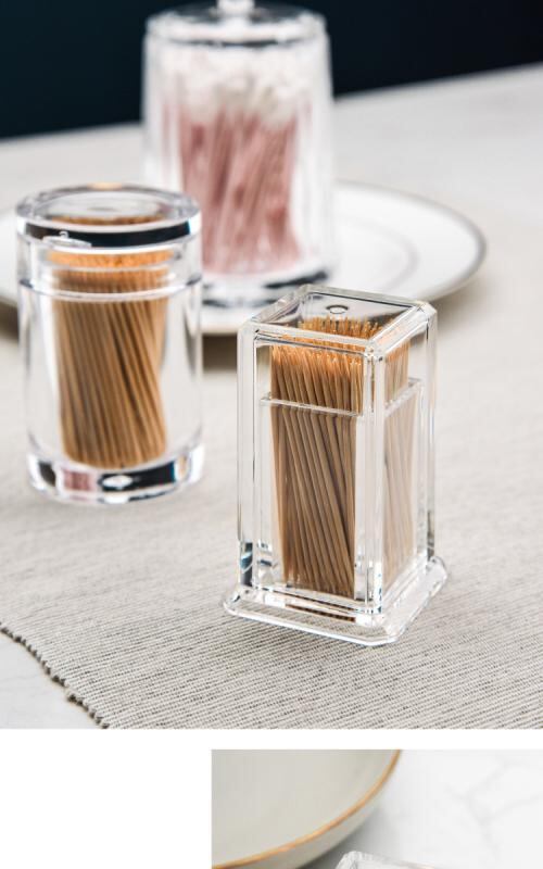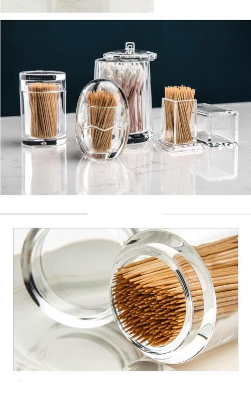 爪楊枝入れ アクリル製 厚手 透明 丸形 四角 円柱形 卵形 卓上 綿棒ケース 多機能 おしゃれ シンプル モダン 飲食店 レストラン リビング 洗面所用