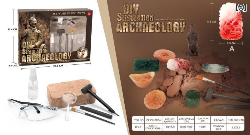 キッズ 知育玩具 考古発掘 宝石 発掘セット ブラインドボックス 文物 兵馬俑 秘宝 玉石 和田玉 碧玉 元宝 玉の指輪 龍紋玉ペンダント 玉の蝉 兵馬俑玉 玉ペンダント プラスチック製 DIY体験 好奇心 探求心 集中力 歴史学習 科学実験 おもちゃ