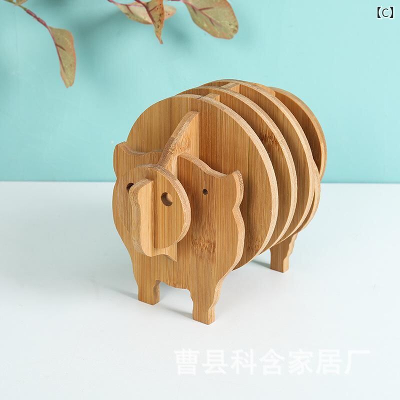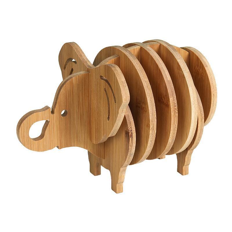 テーブルマット 竹製 木製 立体 動物 アニマルモチーフ ゾウ ブタ 魚 デザイン ランチョンマット 鍋敷き コースター 断熱 耐熱 スクエア型 デスクトップ置物 収納 木目調 ユニーク おしゃれ
