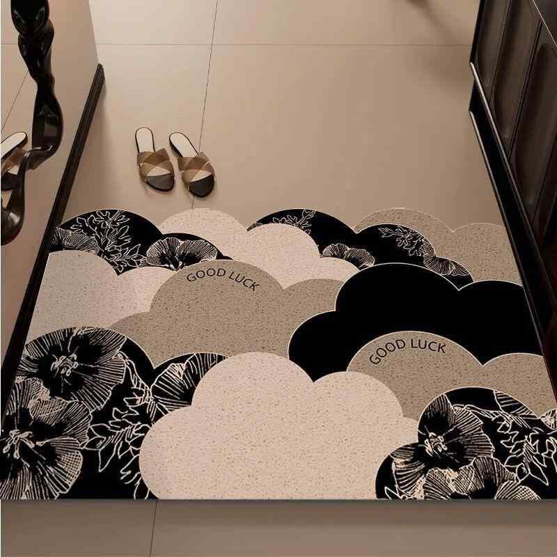 玄関マット フレンチ レトロ クラシカル エントランスマット スクエア PVC素材 泥落とし 砂落とし 汚れにくい 家庭用 室内用 洗える カット可能 ループパイル コイルマット 幾何学模様 植物柄 花柄 ライトラグジュアリー 上質