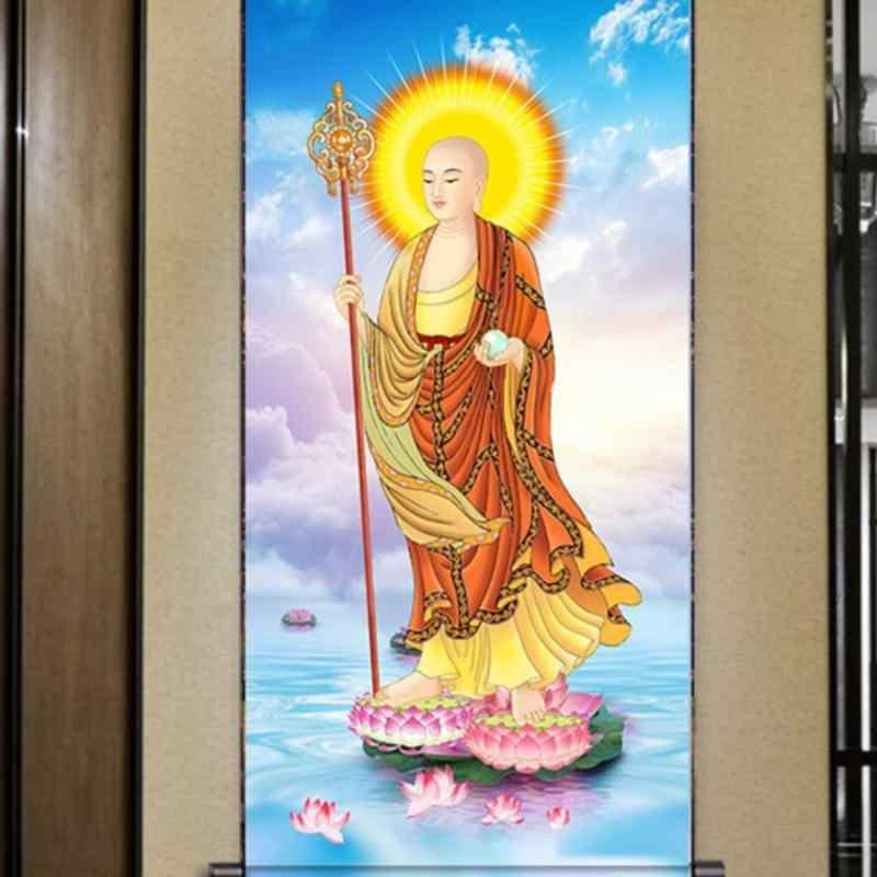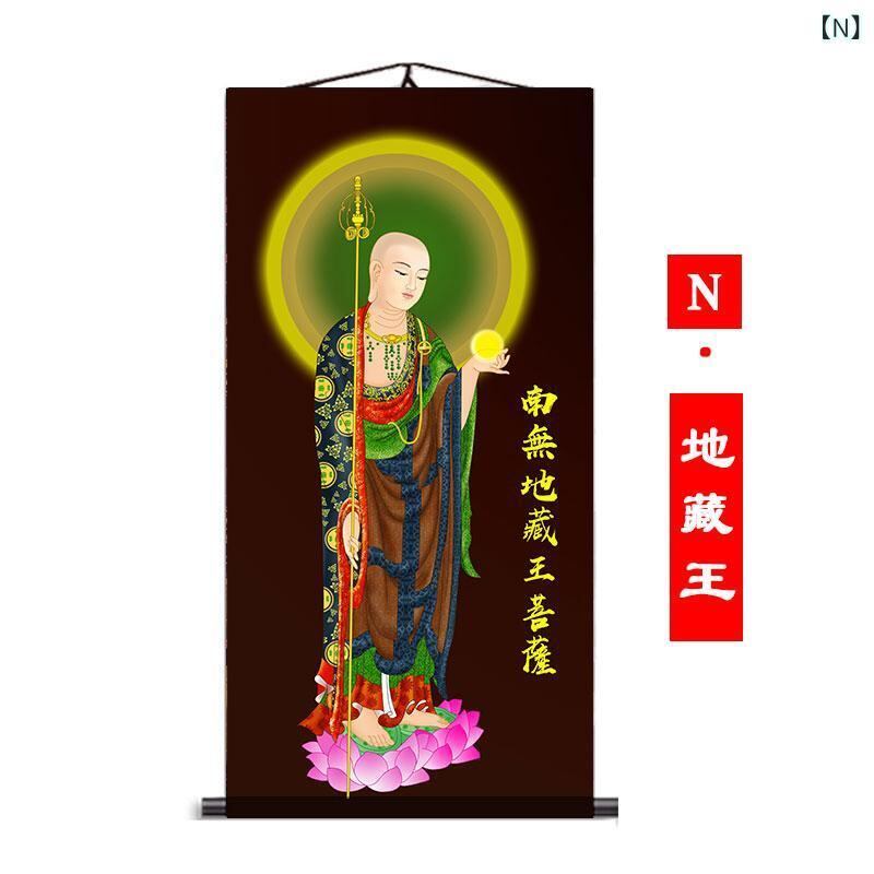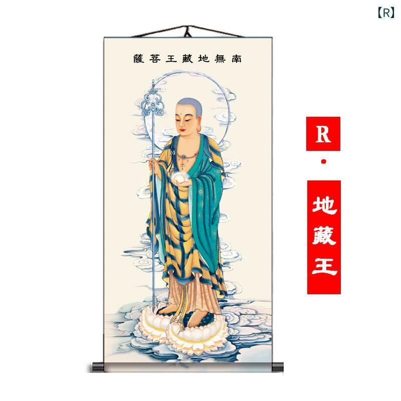 仏画 地蔵王菩薩像 菩薩像 地蔵菩薩 高精細 印刷 掛け軸 掛軸 巻物 軸物 絹 絹布 絹本 家庭用 仏間用 仏壇用 礼拝用 供養品 壁掛け 仏像画 中国画 仏教美術 宗教画
