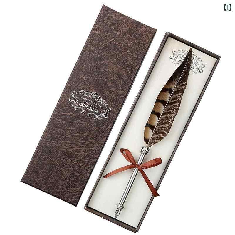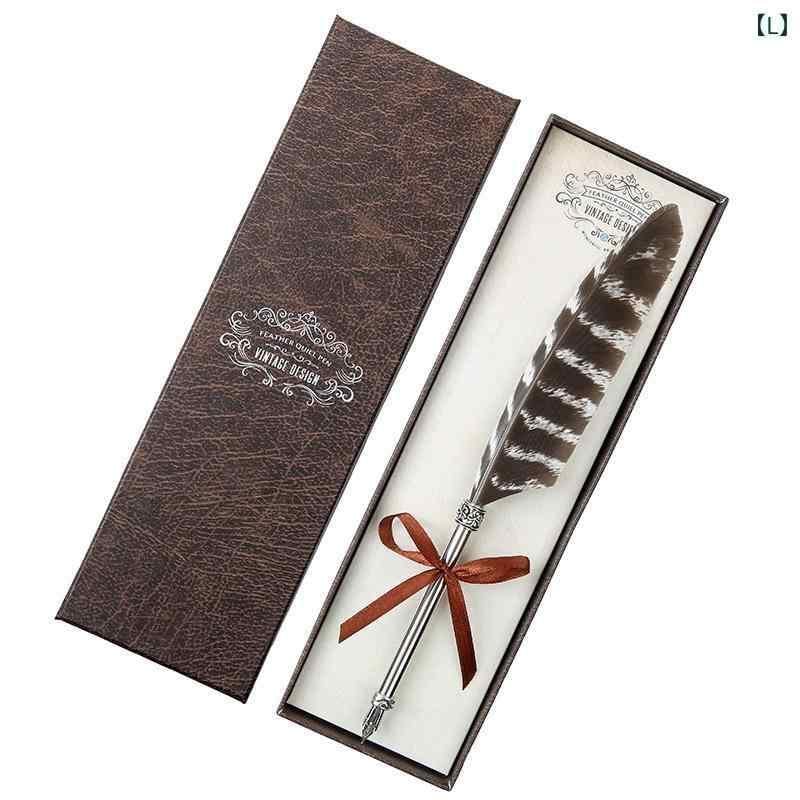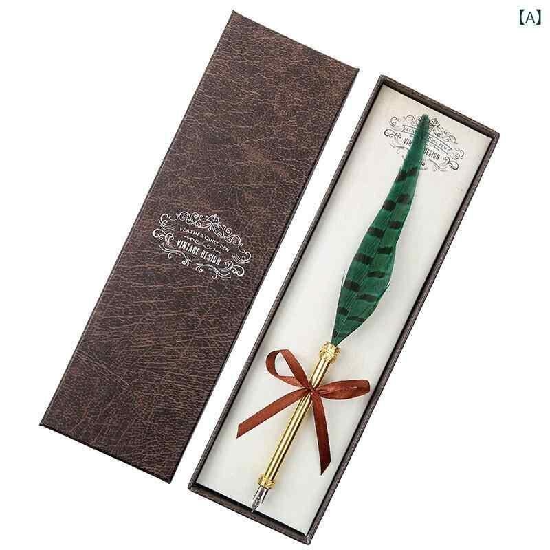 文房具 羽根ペン レトロ 欧風 アンティーク調 つけペン 万年筆 ディップペン ステンレスペン先 ギフトボックス入り プレゼント 学生 ビジネス