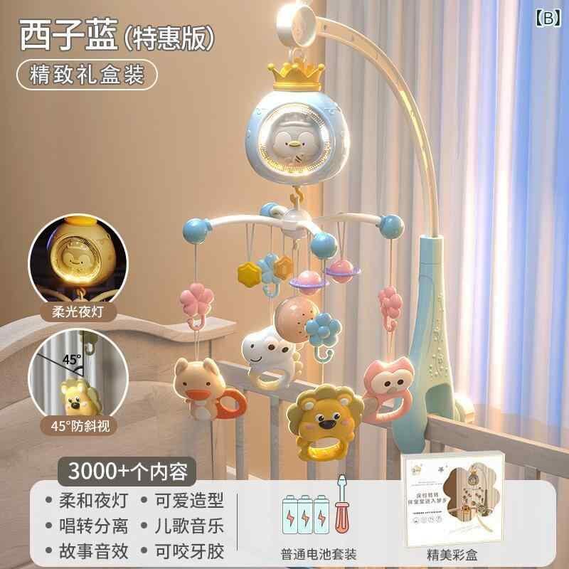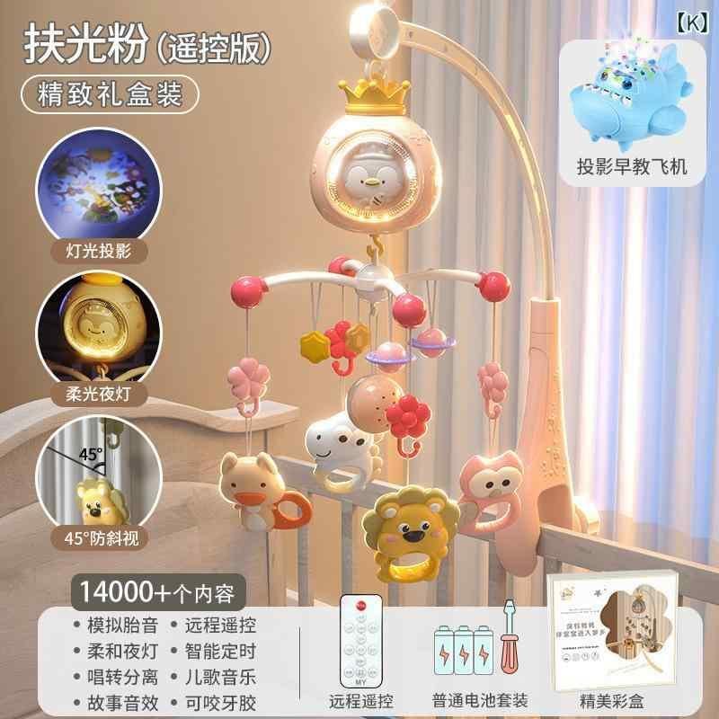 ベビーベッドメリー 新生児 赤ちゃん用 オルゴールメリー 回転式 吊り下げ式 ミュージカルモービル 知育玩具 学習玩具 発達おもちゃ ベビーカー兼用 ベッドサイド プラスチック製 リモコン付き 目に優しい ピンク グリーン グレー