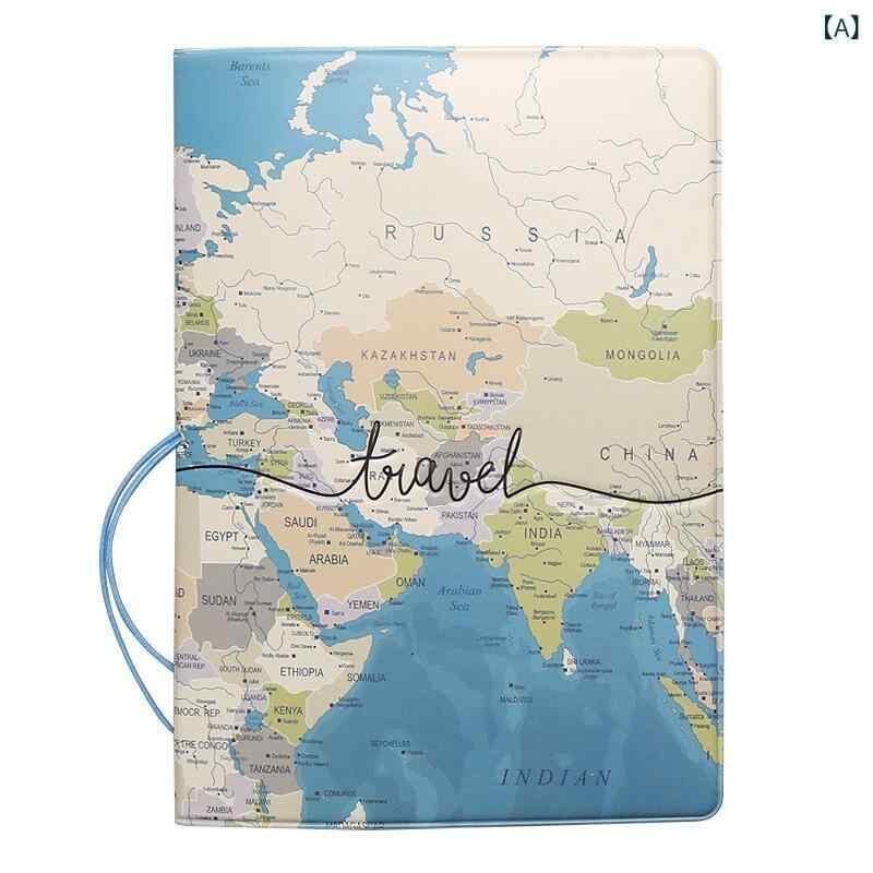 パスポートケース 男女兼用 旅行 トラベル 立体地図デザイン 航空券入れ 証件入れ PVC 合成皮革 風景柄 印刷 型押し 収納 日常使い 便利