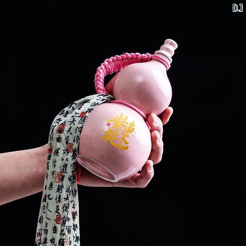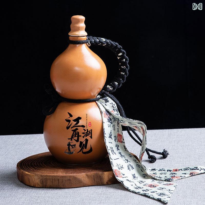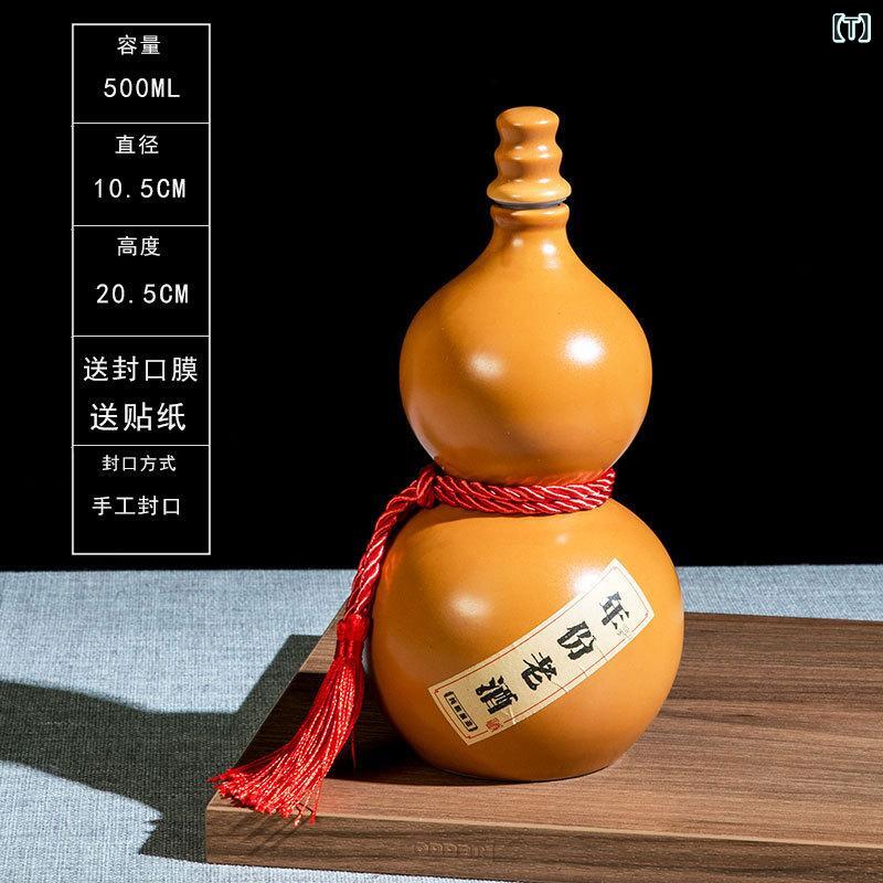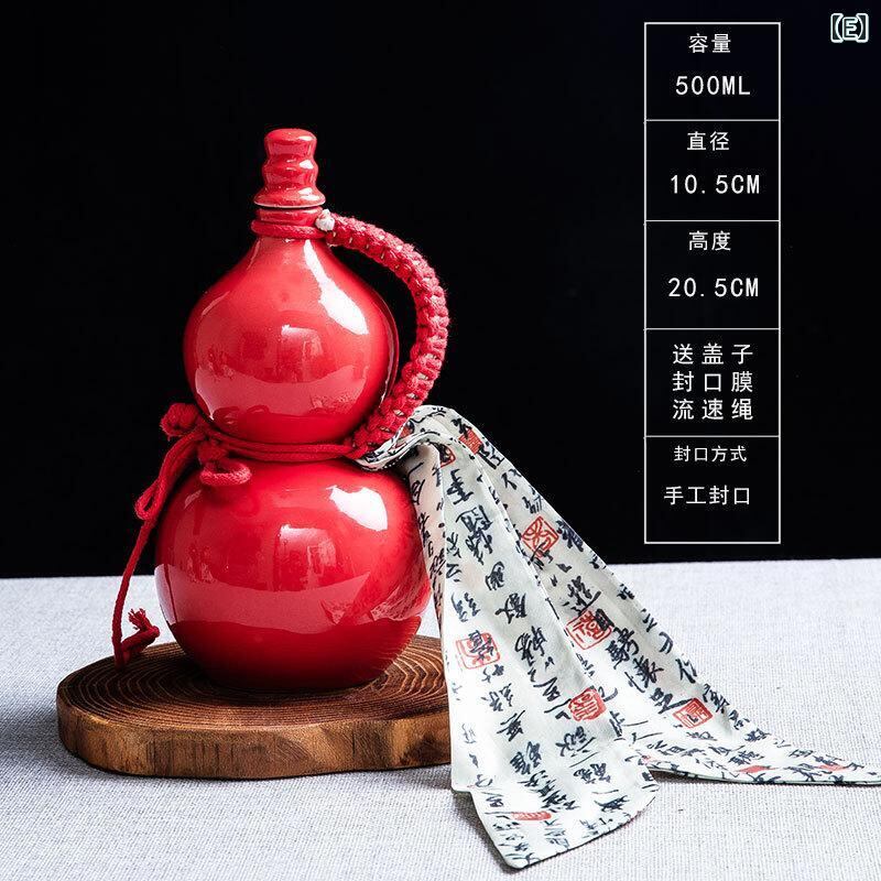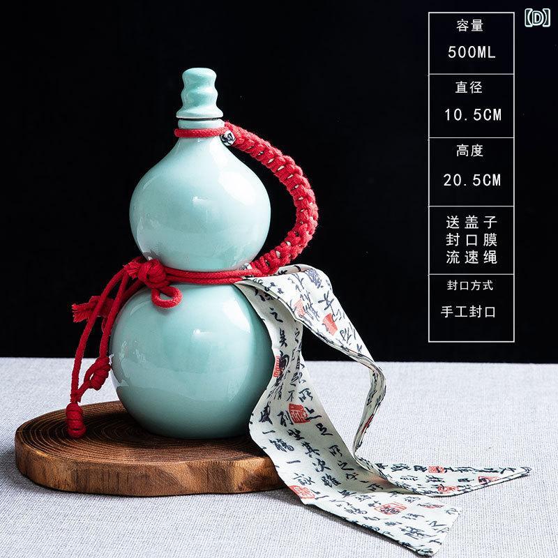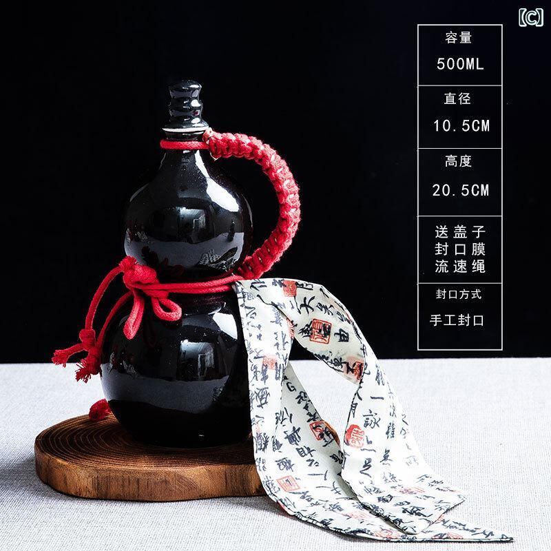 酒瓶 ひょうたん型 陶器 焼き物 500ml 密閉式 貯蔵瓶 保存容器 空き瓶 レトロ ヴィンテージ調 家庭用 酒用 柿色 杏色 青 黒 赤 ピンク