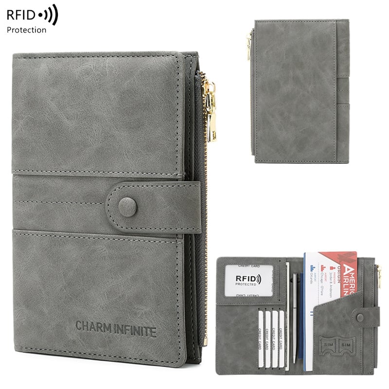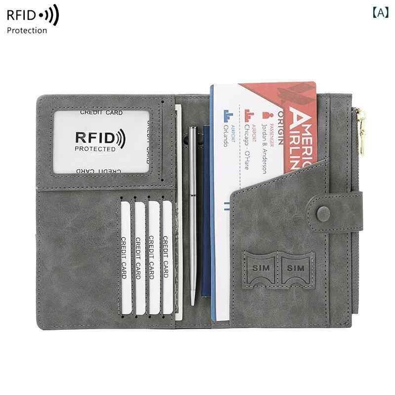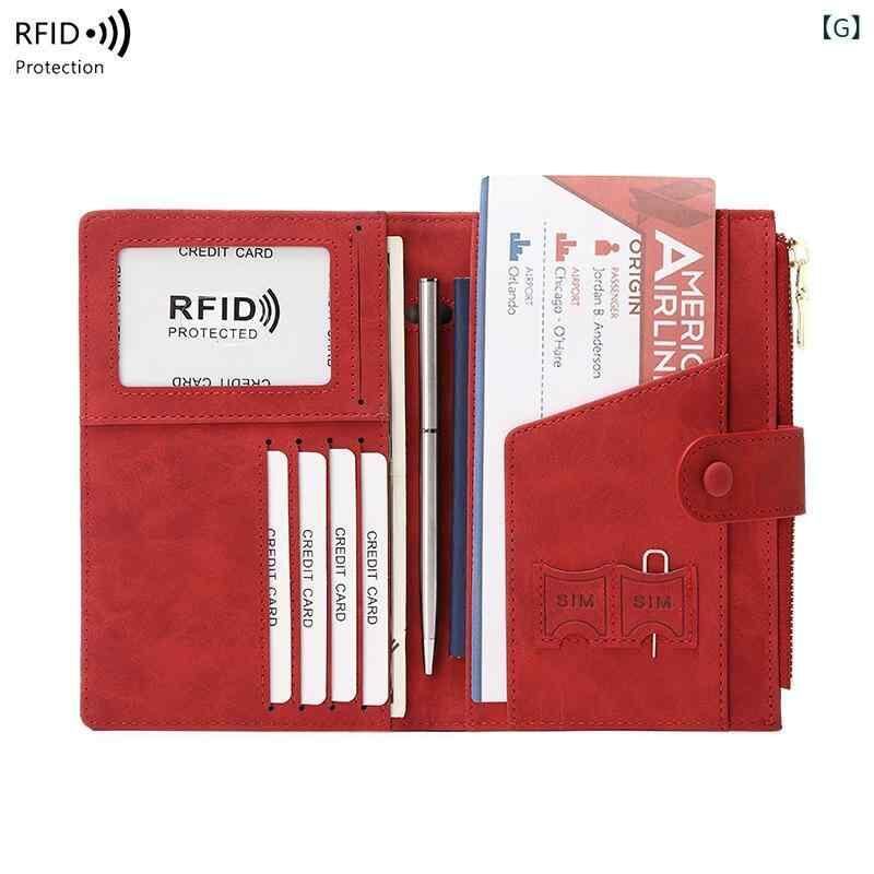 パスポートケース ユニセックス 男女兼用 RFID ブロック スキミング防止 ファスナー開閉 トラベルオーガナイザー 貴重品入れ 海外旅行 出張 普段使い PUレザー 大容量 スリム