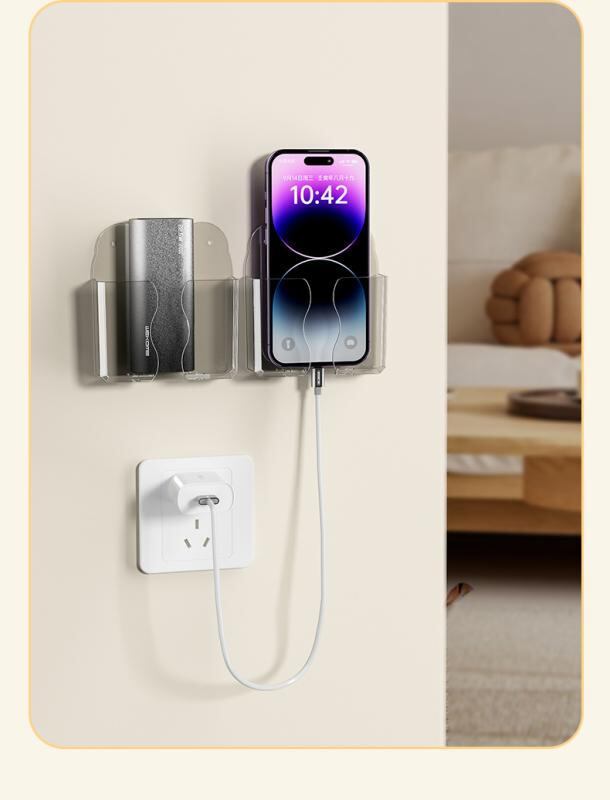 ・カテゴリ: 携帯電話収納ラック ・スタイル: モダンシンプル ・主な素材: PP 100% ・柄: 無地 ・特徴: 壁掛け ・サイズ: 約10.5x9.5x2cm ・重さ: 約50g ・カラー展開: クリアホワイト、クリアグレー、クリアイエロー ・用途: リモコン収納、携帯電話充電スタンド