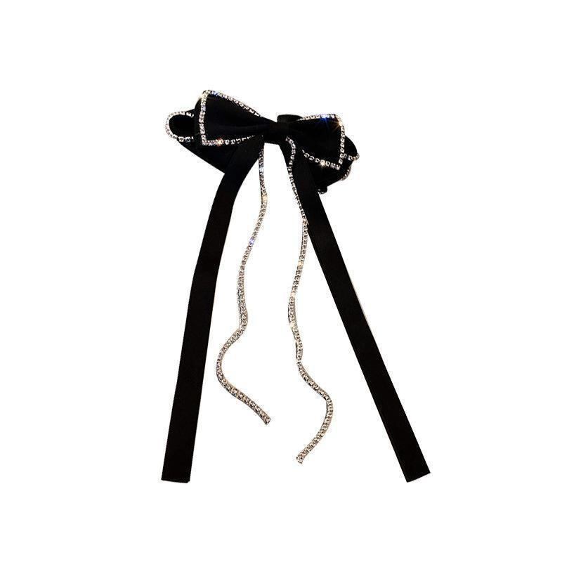 ヘアクリップ レディース ビッグリボン ラインストーン チェーン フリンジ サテン生地 韓国風 上品 エレガント バレッタ バネ式 結婚式 パーティー お呼ばれ フォーマル まとめ髪 髪飾り