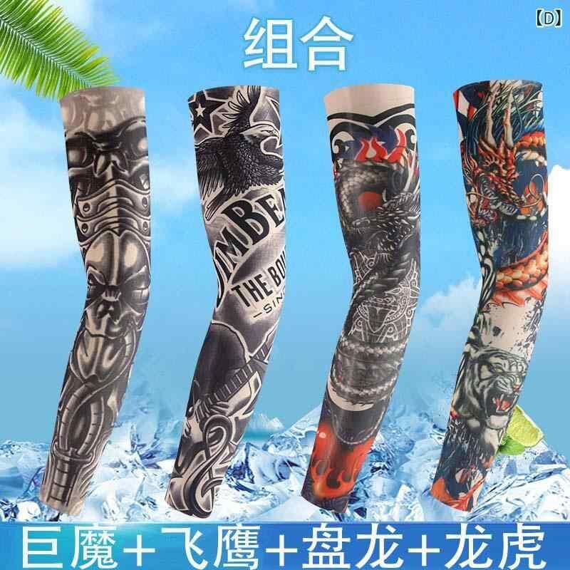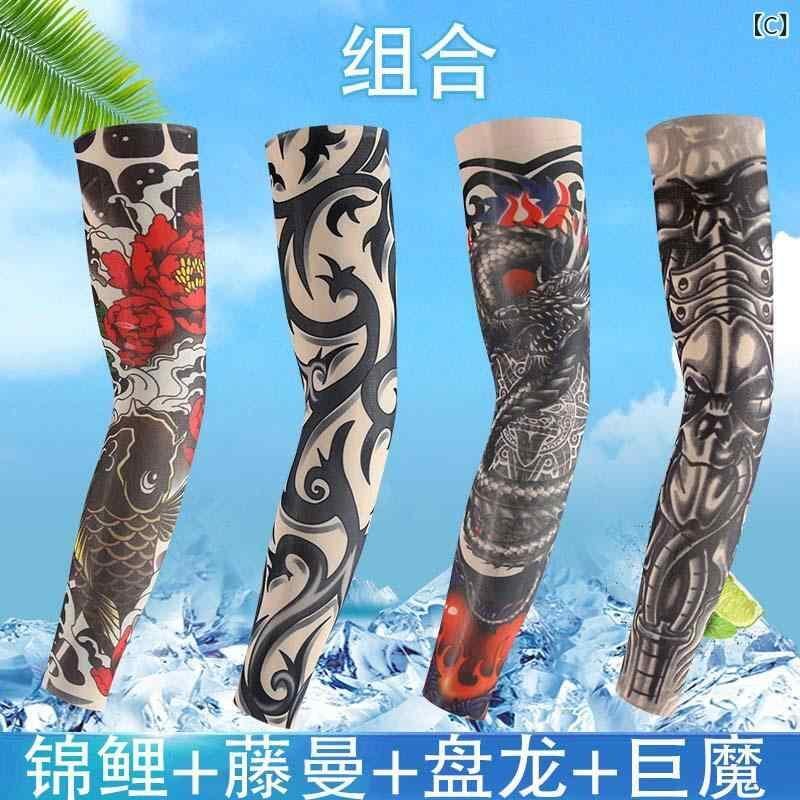 アームスリーブ メンズ 男性用 タトゥーデザイン 刺青風デザイン UVカット 日焼け対策 接触冷感 ひんやり シームレス 吸湿速乾 ナイロン製 夏用 運転 ドライブ サイクリング 自転車 スポーツ 作業用 腕カバー アームカバー