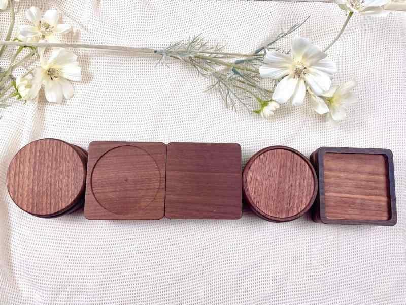 コースター ブナ材 クルミ材 無垢材 天然木製 円形 丸型 四角形 スクエア 和風 モダン おしゃれ シンプル 茶器 カップ グラス ポット用 ホーム オフィス デスク 来客 ティータイム 湯呑み敷き