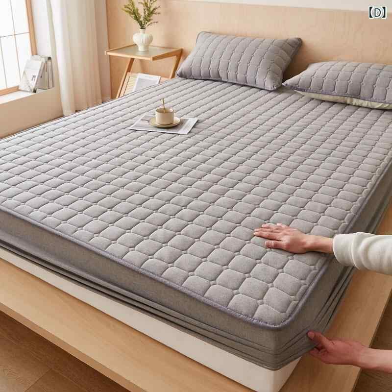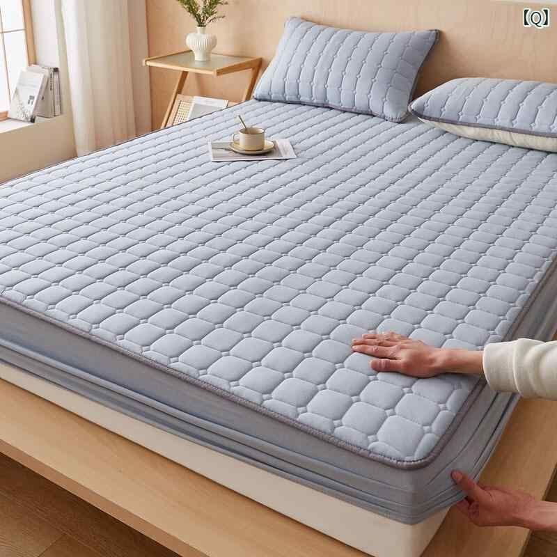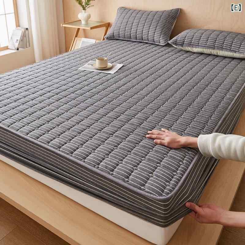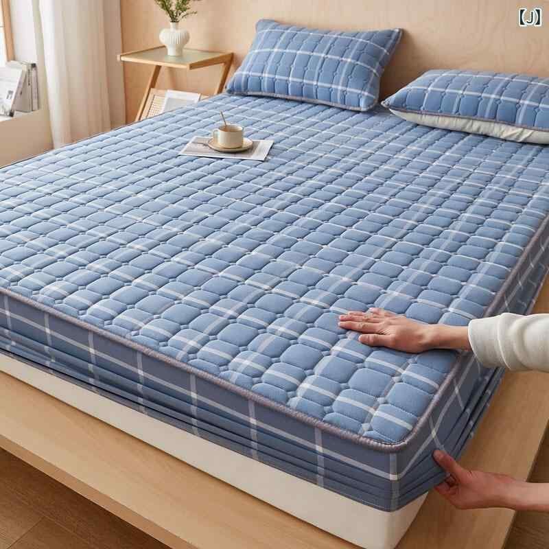 ボックスシーツ ウォッシュドコットン 中綿入り キルティング加工 厚手 滑り止め ベッドパッド 敷きパッド シンプル ナチュラル 北欧風 チェック柄 デザイン 洗える オールシーズン 快適な寝心地