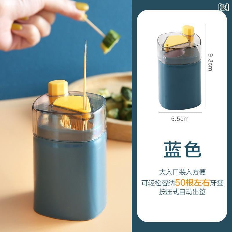 爪楊枝ケース ワンプッシュ式 自動 透明 携帯用 卓上 プラスチック製 出張 旅行 オフィス 食卓 アウトドア 衛生的 軽量 コンパクト グレー ブルー ピンク
