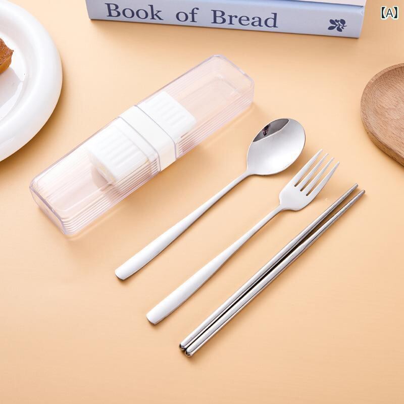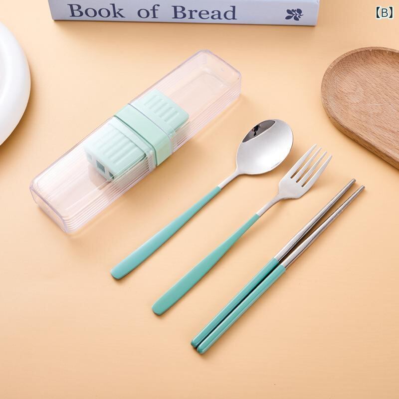 カトラリー 学生用 大人用 携帯用 ポータブル ステンレス製 箸 スプーン フォーク 3点セット 韓国風 モダン シンプルデザイン キャンプ アウトドア 通学 通勤 普段使い ホワイト グリーン ブルー ブラック ピンク
