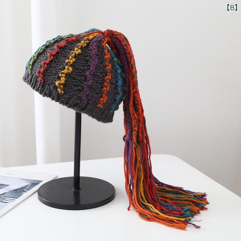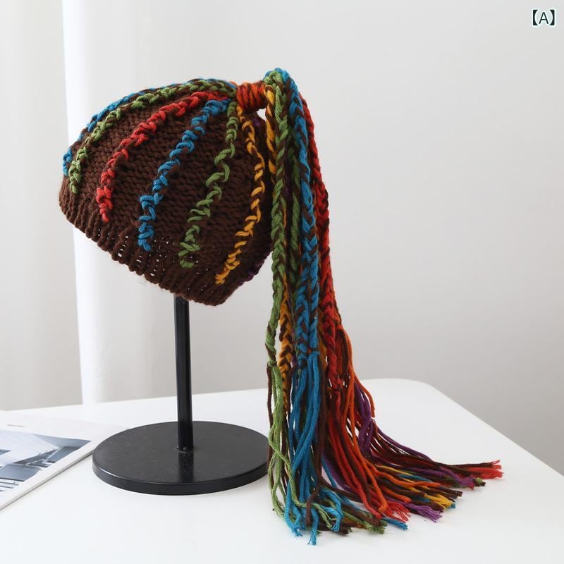 ニット帽 ユニセックス ドレッドヘア風 ブレイズ フェイクヘア ウィッグ一体型 ヒップホップ レゲエ ストリート系 防寒 保温 手編み ハンドメイド 個性的デザイン 冬物 カジュアルスタイル ファッション小物
