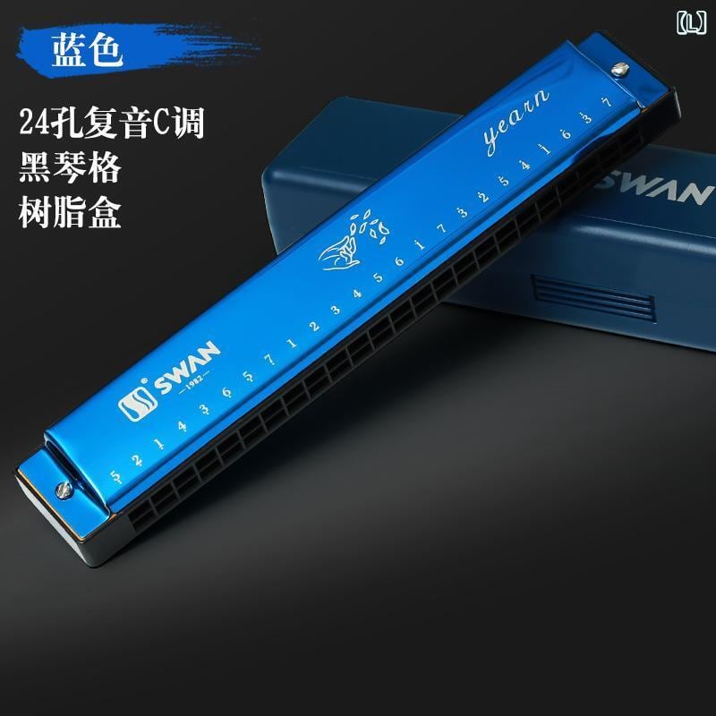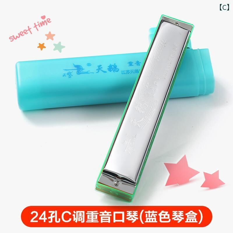 ハーモニカ 子供 大人 学生 初心者 入門 練習用 プロフェッショナル 演奏用 24穴 複音 重音 C調 楽器 プラスチック製 銀メッキ ブルー ピンク ブラック レッド ゴールド シルバー