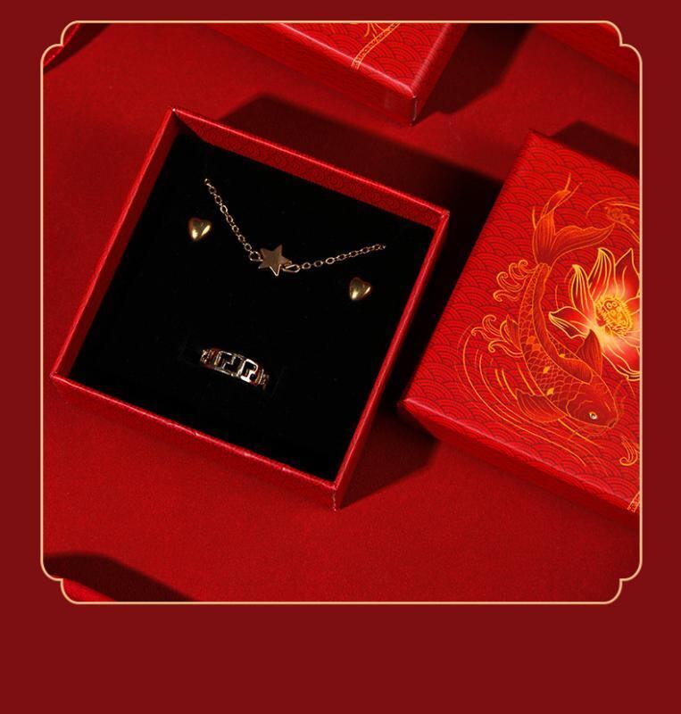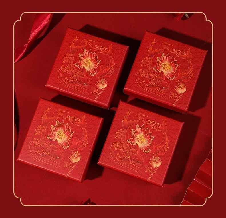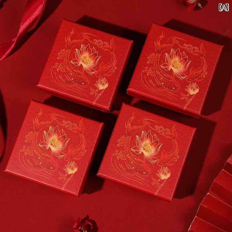 ジュエリーボックス お正月 新年 お祝い事 縁起物 錦鯉 赤 レッド 和風 中華風 紙製 天地蓋 アクセサリー ネックレス ブレスレット リング ピアス イヤリング 小物入れ プレゼント 贈答用 ギフトケース