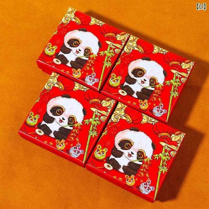 ・素材: 紙、紙板 ・用途: アクセサリー包装 ・誤差: 0.1mm ・サイズ: 約8.5×8.5×3.5cm、手提げ袋 約15×13×7cm ・カラー展開: レッドパンダ、福満、好運錦鯉、レッド(セット用袋)