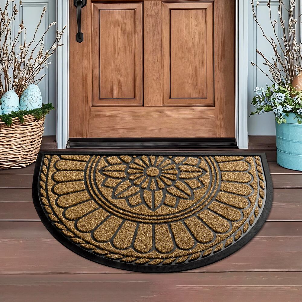 玄関マット 半円形 ゴム製 ポリプロピレン繊維 ヨーロピアン調 汚れにくい お手入れ簡単 滑り止め加工 水洗い 家庭用 室内 エントランスマット フロアマット ラグ