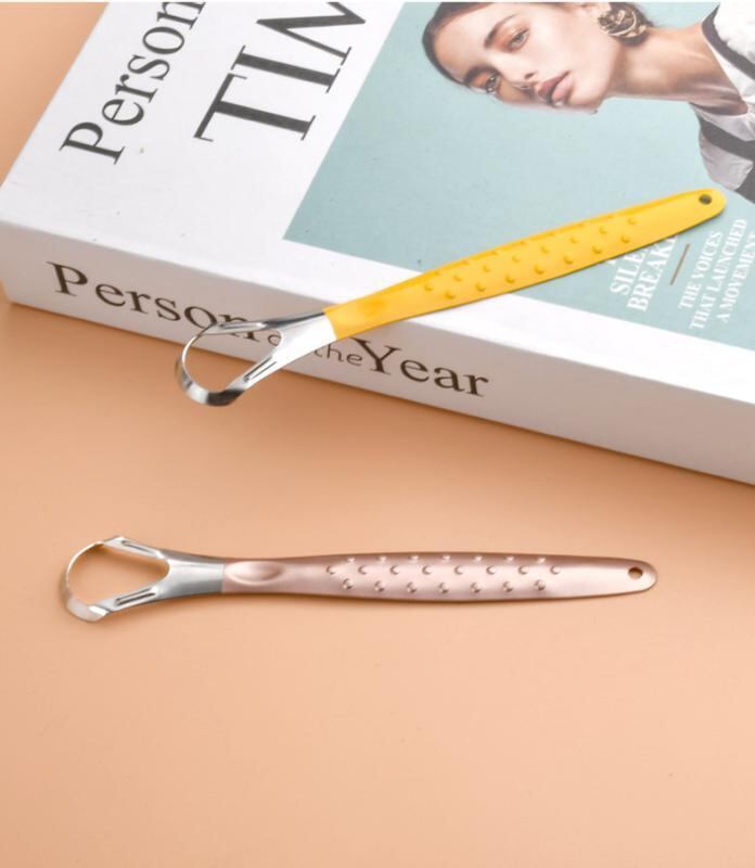 舌クリーナー ステンレス製 舌磨き 舌苔除去 舌ブラシ 口腔ケア用品 口臭対策 衛生的 清潔 持ち運び コンパクト 原鋼色 グリーン ブルー イエロー ローズゴールド