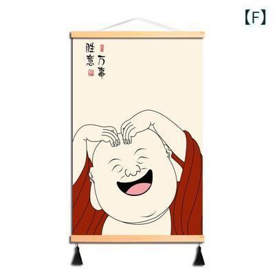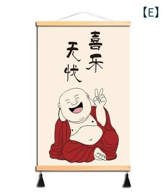 掛軸 モダンチャイニーズスタイル 天然杉材 タッセル付き 高精細 笑顔 弥勒菩薩 仏画 ユーモラス リビング 玄関 壁飾り 目隠し 間仕切り ウォールアート 和室 洋室 開運 癒し インテリア