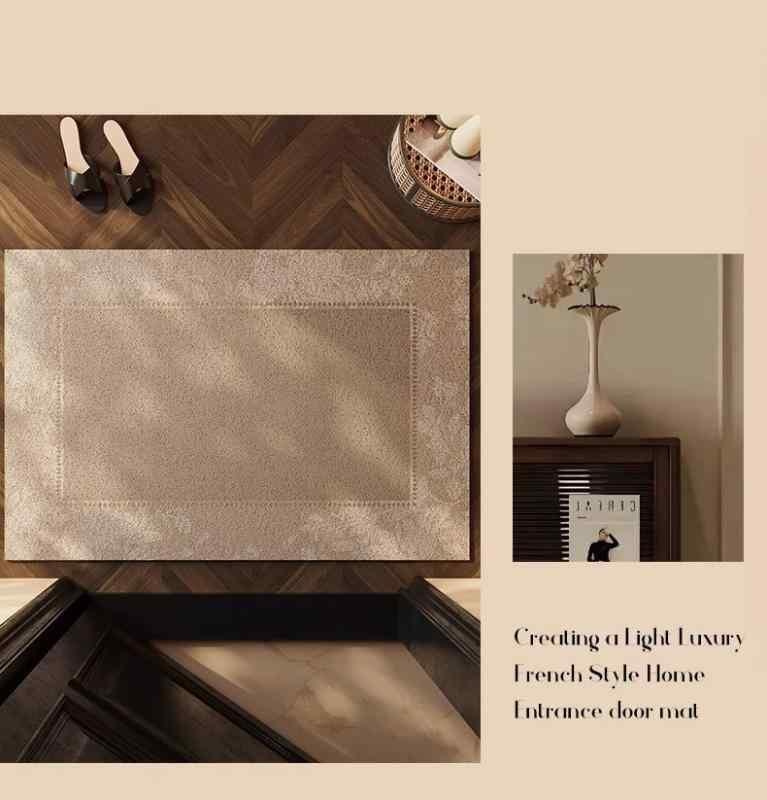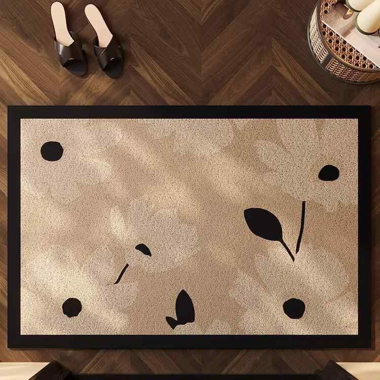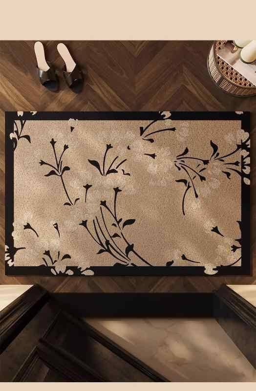 玄関マット PVC ループパイル 泥落とし 屋外 屋内兼用 フレンチレトロ 上品 高級感 水洗い可能 長方形 リビング エントランス 植物柄 フラワー カット可能