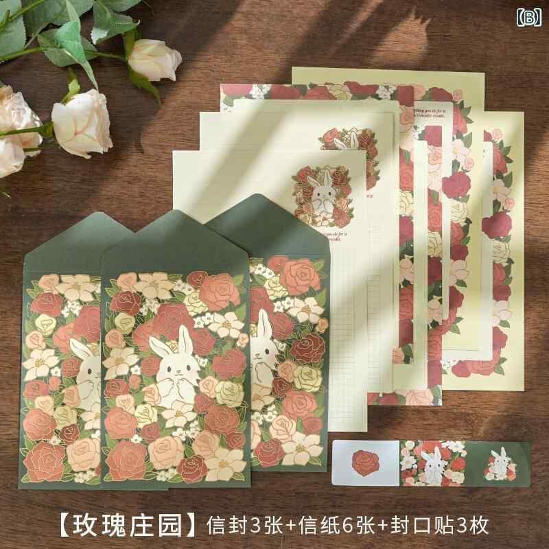 レターセット 封筒 便箋 ロマンチック レトロ 花柄 花束 告白 ラブレター メッセージ 手紙用 高級感 紙テープ 封緘 シール 贈り物 ギフト プレゼント