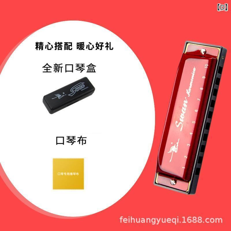 ハーモニカ 子供用 初心者 入門 10穴 ブルース C調 プロ演奏用 銅板 クロムメッキ 樹脂ボディ 高音質 クリア音色 耐久性 軽量 コンパクト ゴールド ブルー ブラック レッド シルバー